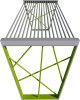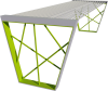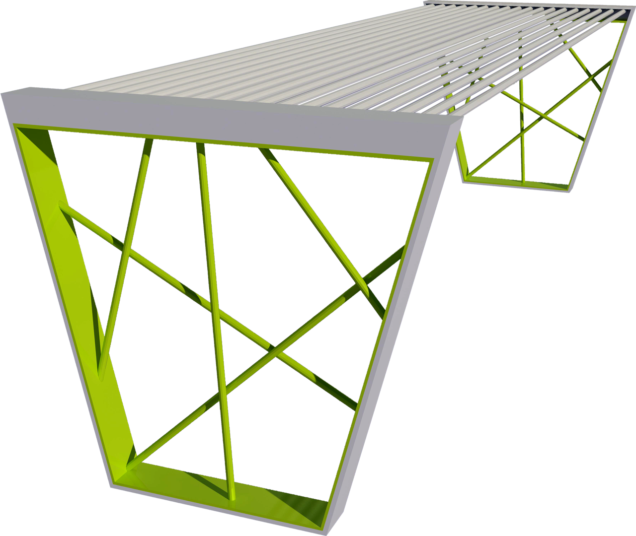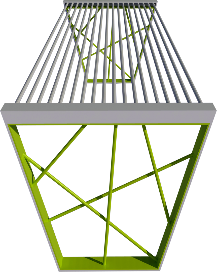 Materiali: due costole in piatto spessore mm. 8 con tondi di acciaio collegate tra di loro dalla seduta costituita da profili tondi in acciaio.