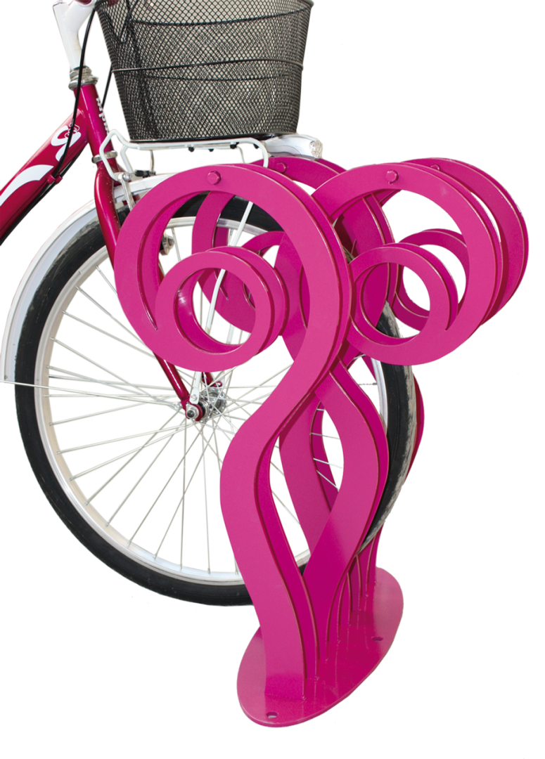 Materiali: costituito da costole in acciaio spessore mm. 6 tagliate con plasma ad alta definizione, collegate tra di loro da profilati in tondo d’acciaio. Il fissaggio al suolo avviene tramite una piastra.